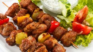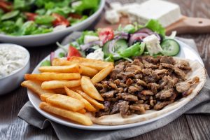 Souvlaki, suzuki, kipfilet, gyros en koolsalade